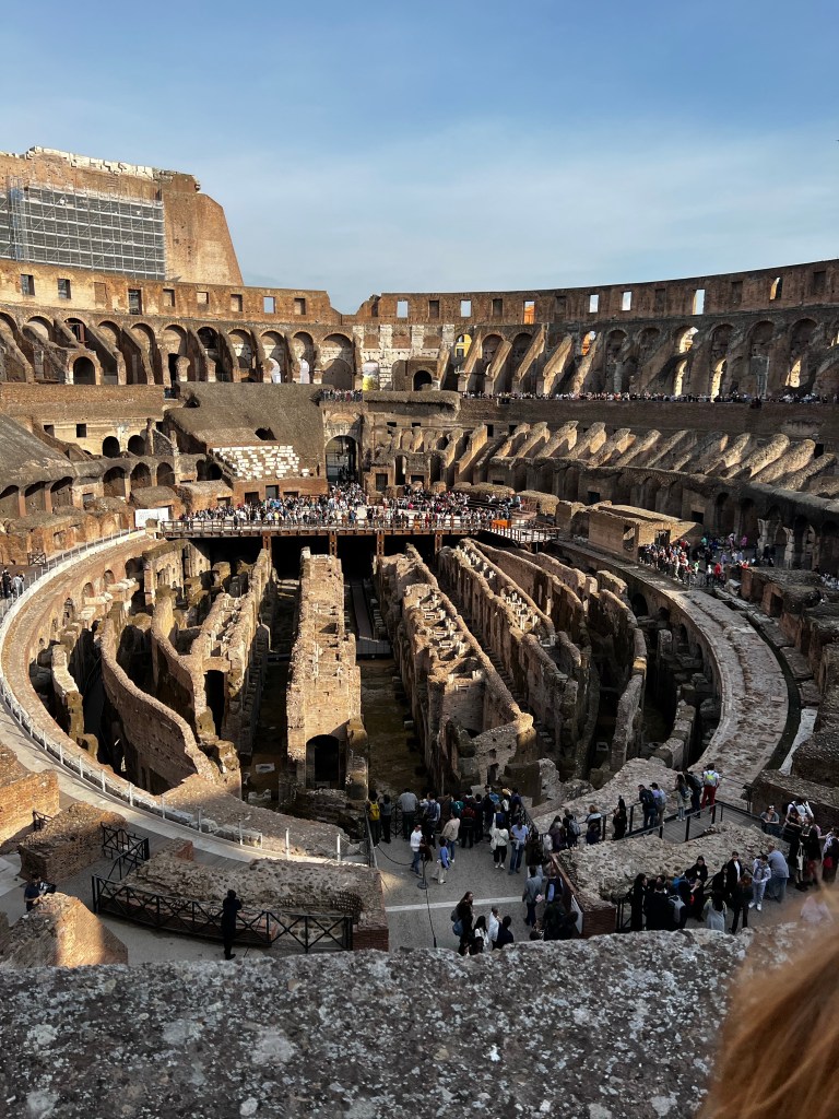 This afternoon I was walked to death on a tour of The Colosseum, The Palatine Hill and The Forum. Goodness but Rome is beautiful. I’m getting to know my way around and have averaged 8 miles a day! Our guide was great … very handsome but more to the point informative and knowledgeable. The Colosseum is rather majestic inside and out. Of course we had the gladiator spiel but also some well researched historical facts as a counterbalance. I met up and went around with an American Family, Paulette, and her daughter. I thought her accent was odd and a bit British … she’s a Jamaican who lived in London for years before ending up in New York. Very sweet as we’re her family.