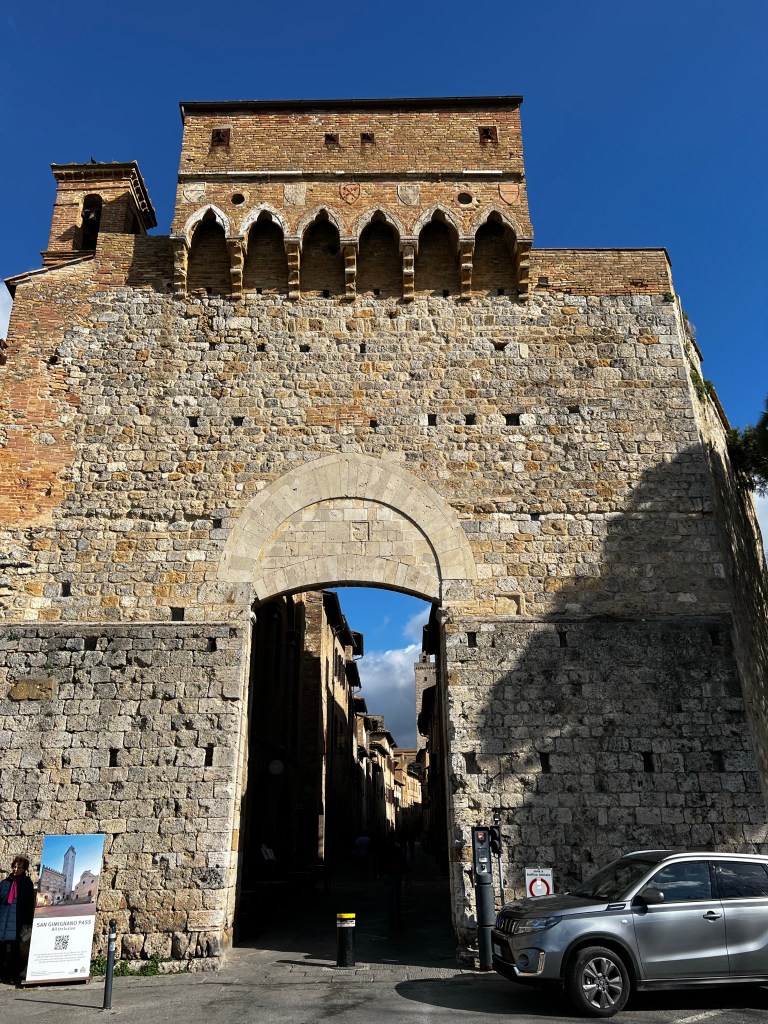 I’m sitting outside the hostel listening to church bells as I write this. the drive to San Gimignano took us through some beautiful scenery. Vineyards of Chianti country, grey green olive groves. Forested hills and valleys until we finally climbed the steep hill to the town. The Italians take their history and culture very seriously. This is a beautiful place … so clean and well tended. We were lucky enough to get here early and there were few people around. Coaches started arriving as we left. A two hour visit; enough time to take in the beauty of the town, visit the Torture Museum and have a delicious gelato. It was peaceful wandering the backstreets and looking in some very good shops. It’s a shame the museum was closed but nonetheless it’s a visit I wouldn’t have missed. It was a stopping point on the road from Paris to Rome … I feel I’ve walked in some ancient footsteps.