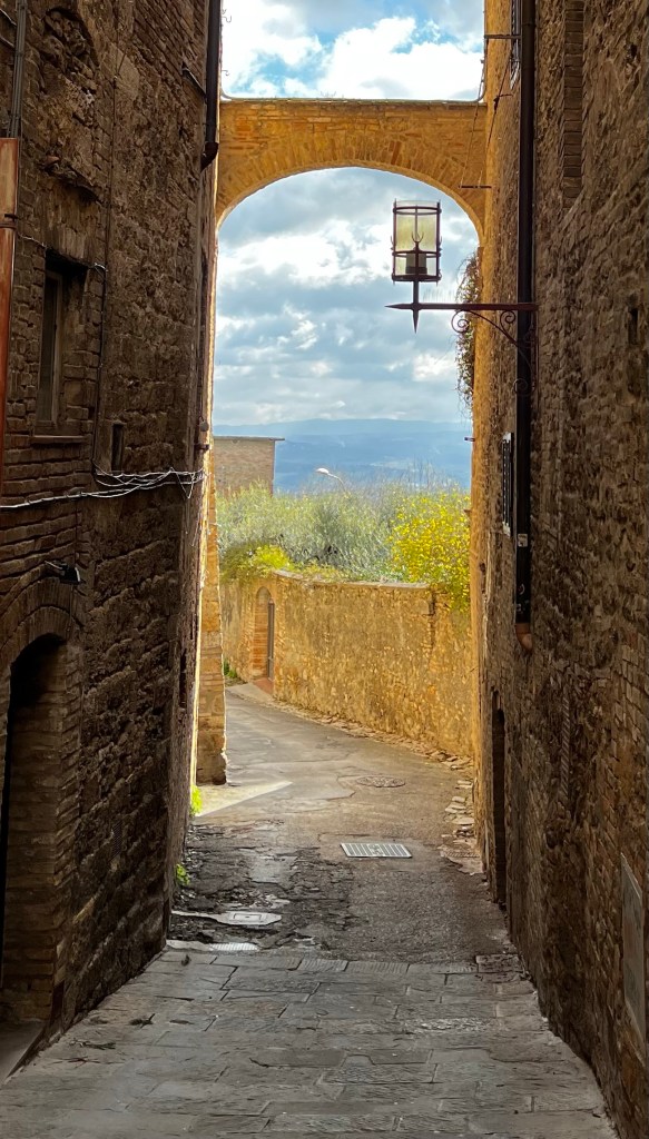 This is a day I’ll remember for a long time. Sunshine, the towers and quiet streets, frescos and courtyards. It was all very Tea with Mussolini… I understand how people fall in love with Tuscany. I’m half in love with it myself.