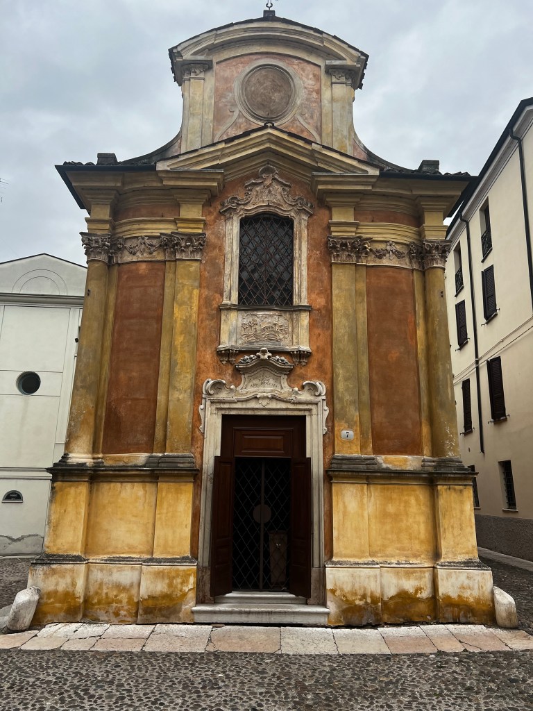 Mantua is a pretty, vibrant workaday town with some beautiful corners, great shops and wonderful buildings. Generally I’ve avoided churches but one or two caught my eye. I’ve had a lunch of focaccia with coffee and a spremuta.