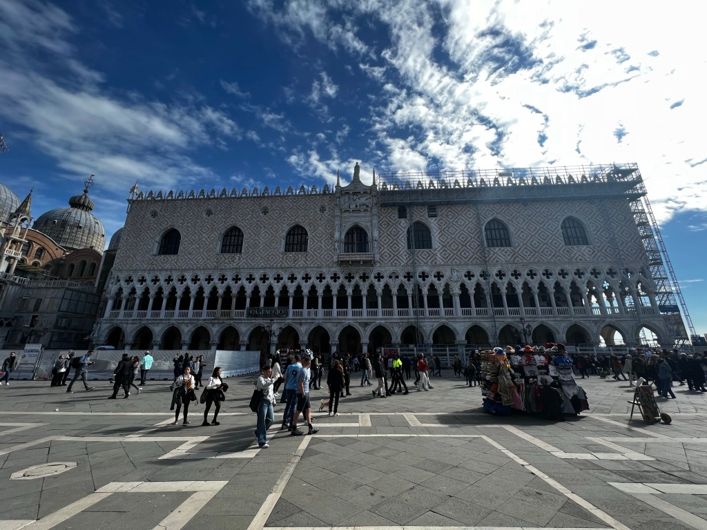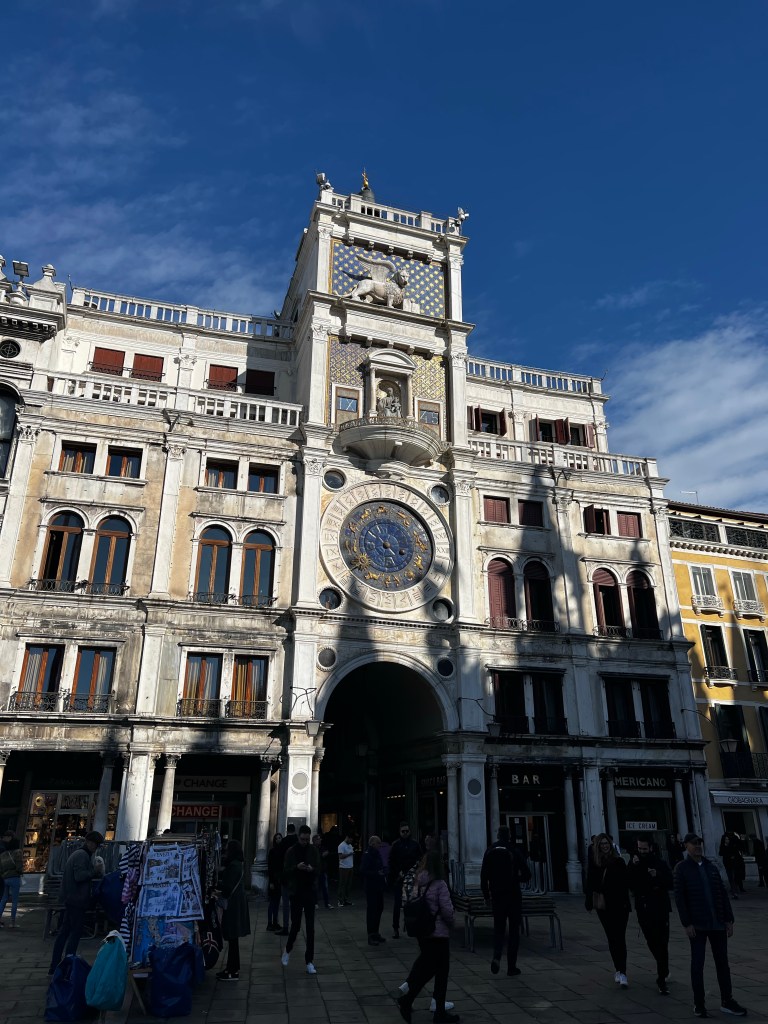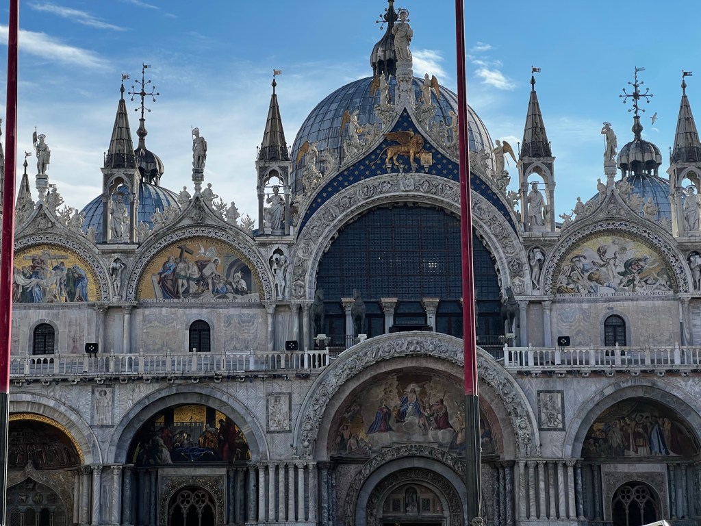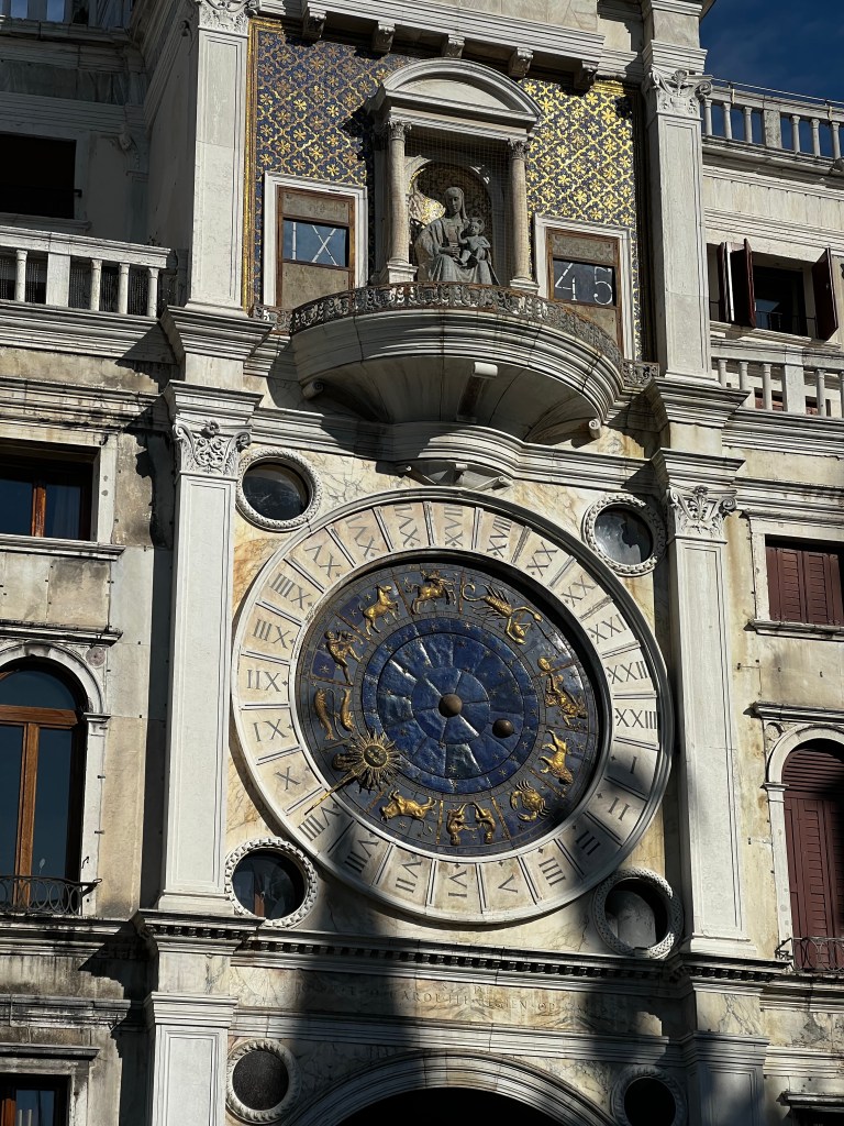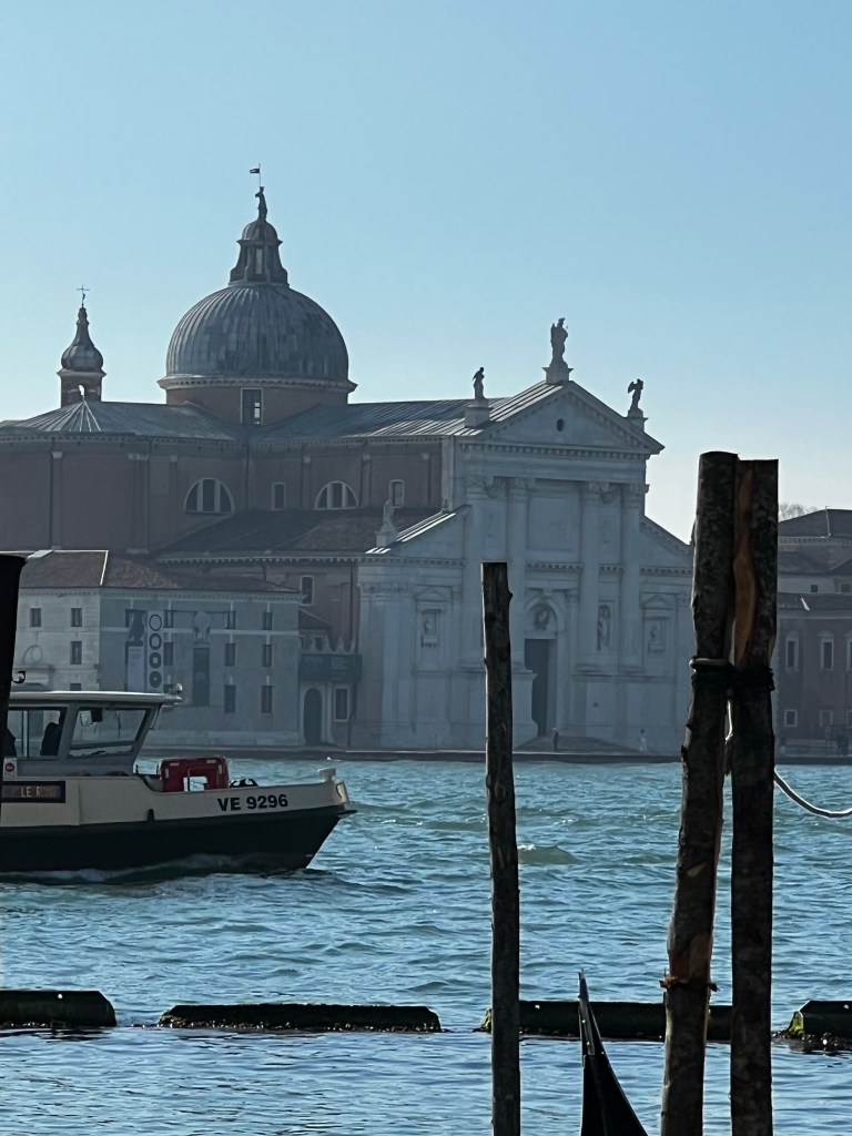 The Square is rather beautiful and this morning dawned sunny again. The light over the canals is soft … I can see why Canaletto loved it, it has a really pellucid quality, things seem to dissolve in the distance.St Marks is rather wonderful this morning … grand and imposing … but I won’t go in today … the queues are immense even at this time of year. I shall wander this morning with a visit to the Peggy Guggenheim Collection this afternoon. Later this evening I’m going to Padua to see the Giotto’s in the Scrovegni chapel for an evening visit.