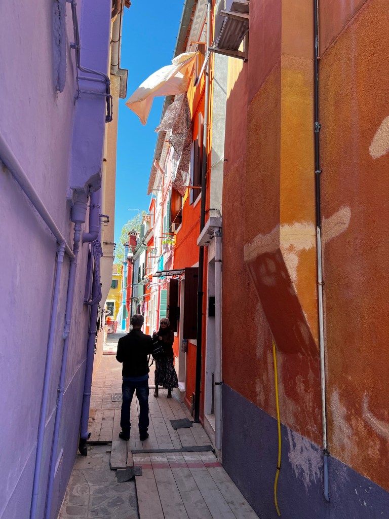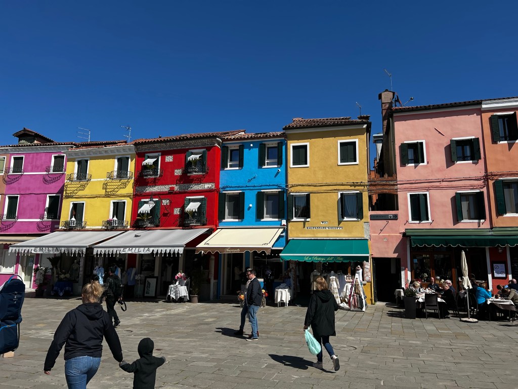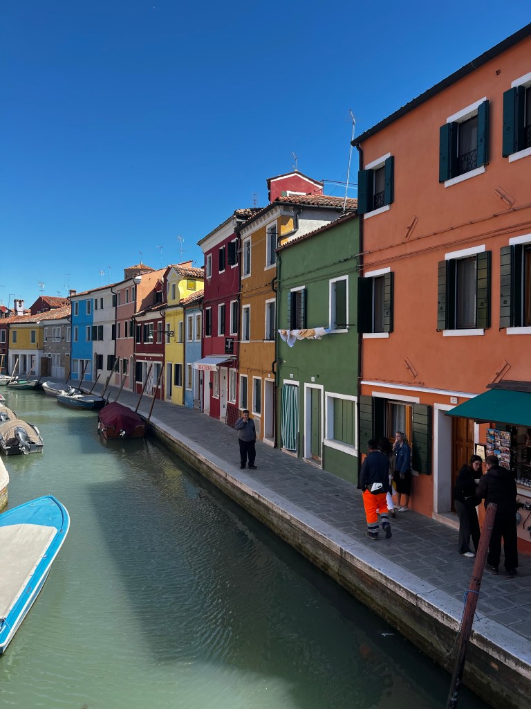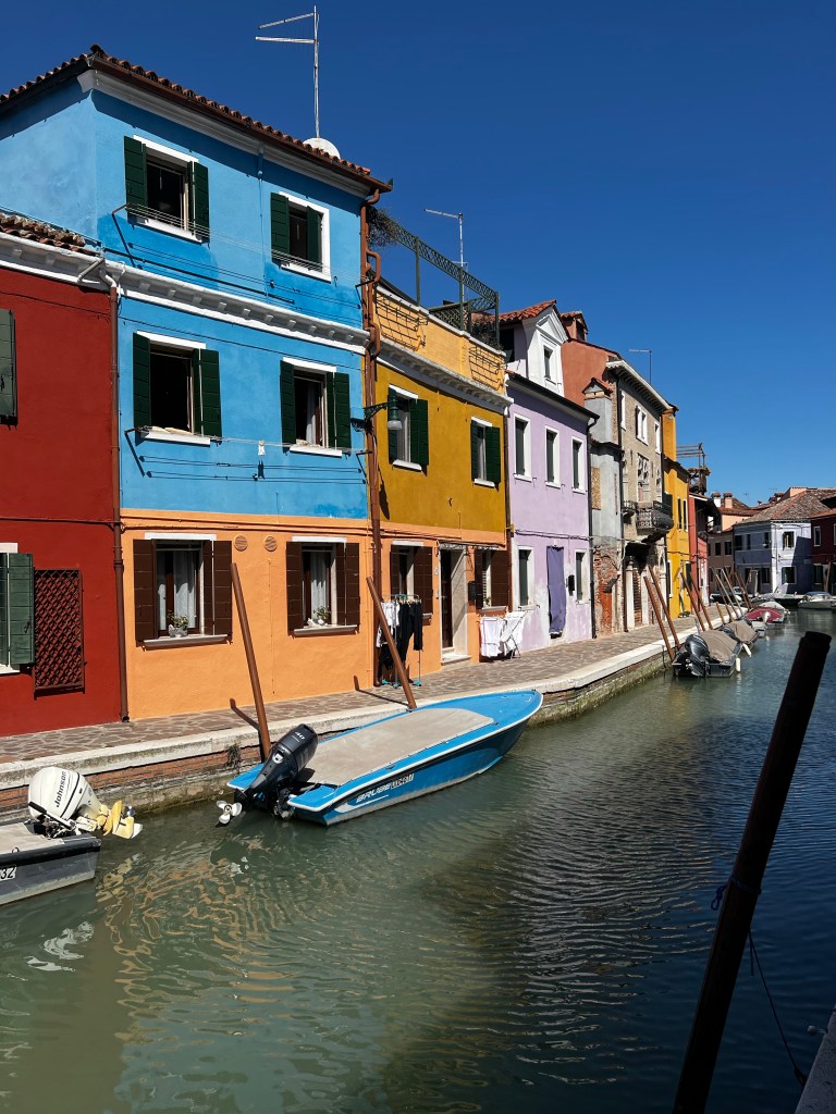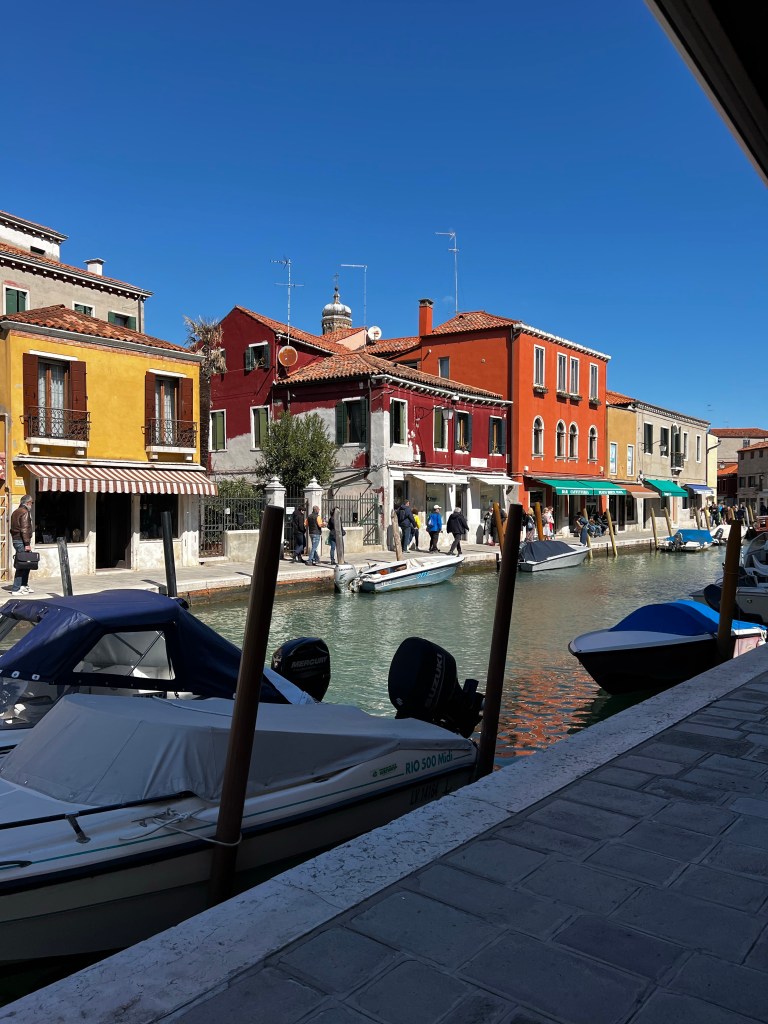 Taking a trip to the islands. It’s a beautiful day and while it’s breezy the sun is warm. It will be nice to have some time away from the city. Murano is very pretty and remarkably quiet. We had our glass demonstration which was interesting. Murano , contrary to expectations, was really lovely with its canals and some pretty houses. An industrial site where glass making has been carried out in safety well away from the city for centuries it certainly had a charm of its own. Some rather beautiful art glass once you get away from rather kitch animal figures. A pleasant place to spend an hour or two.