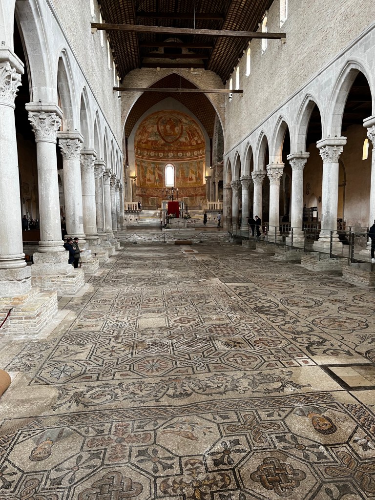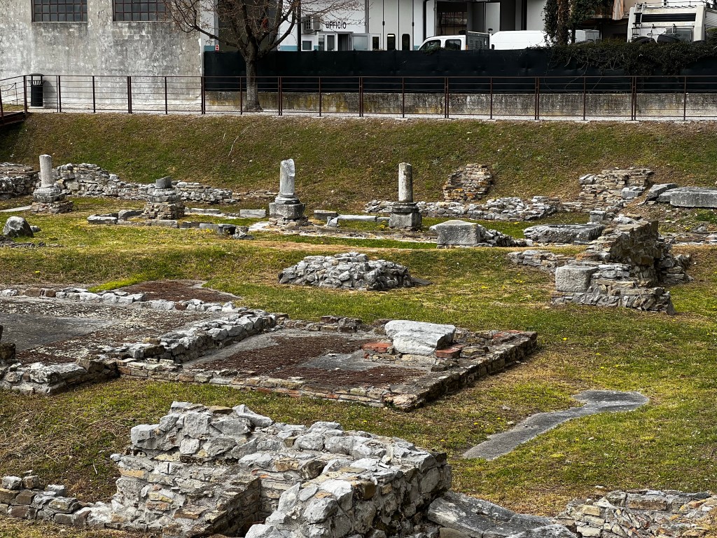 I wasn’t sure what I would find here. A train journey and then waiting for a bus it seemed quite a journey as it’s about 40 miles from Trieste. However I’d heard about it and it is yet another UNESCO world heritage site so I thought it would be worth a look. I walked a little in Trieste in the morning with my roommate and newfound friend Mihaela who showed me where the buses left from. She was returning to Salzburg … a charming woman. So I got on my trusty app and booked the train and on arriving at the nearest station to Aquileia bought my bus tickets in the station bar!