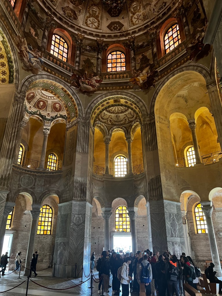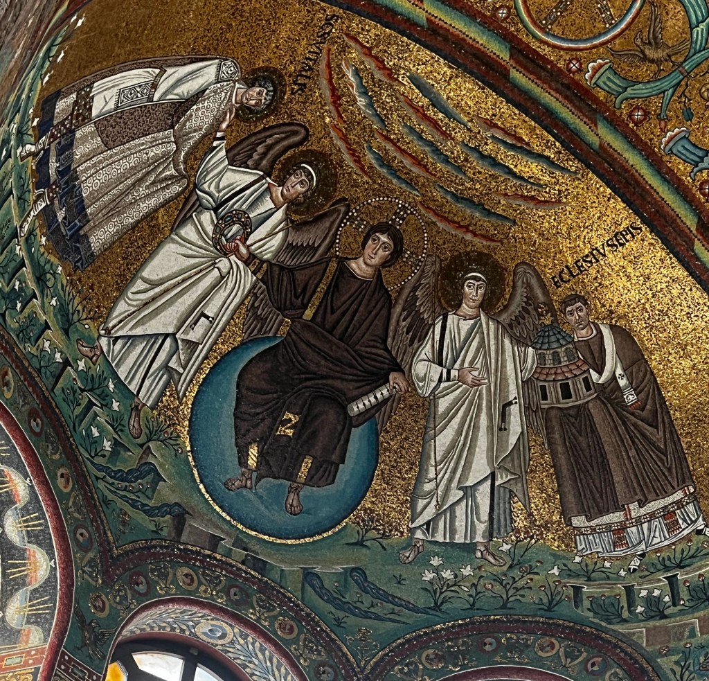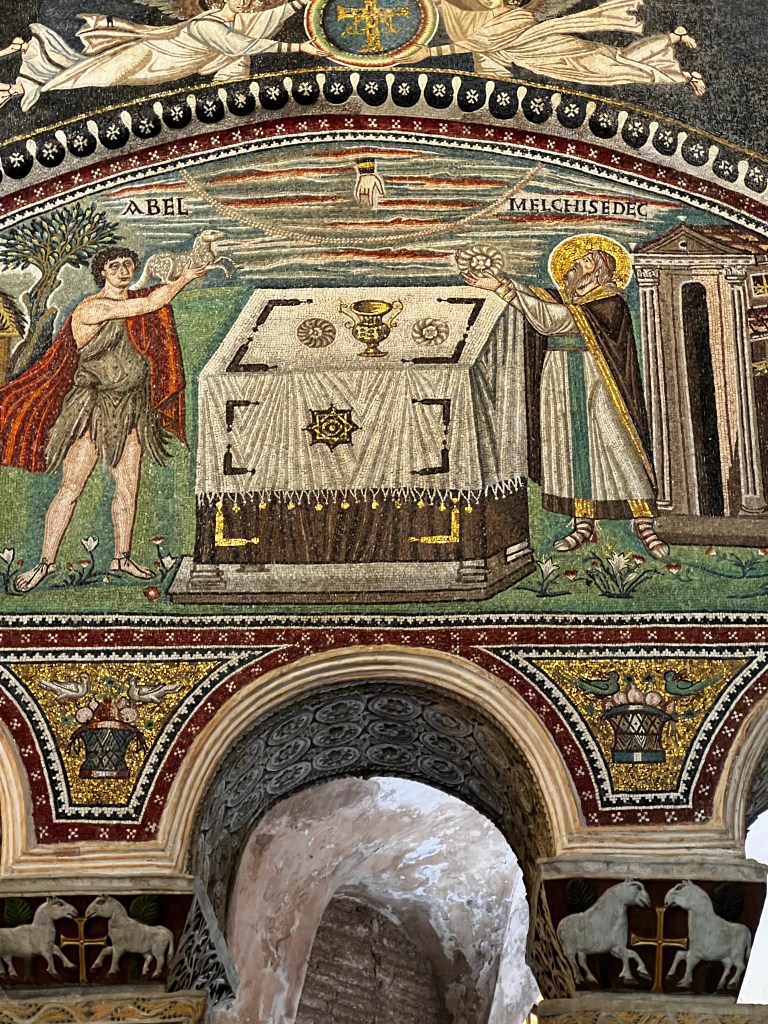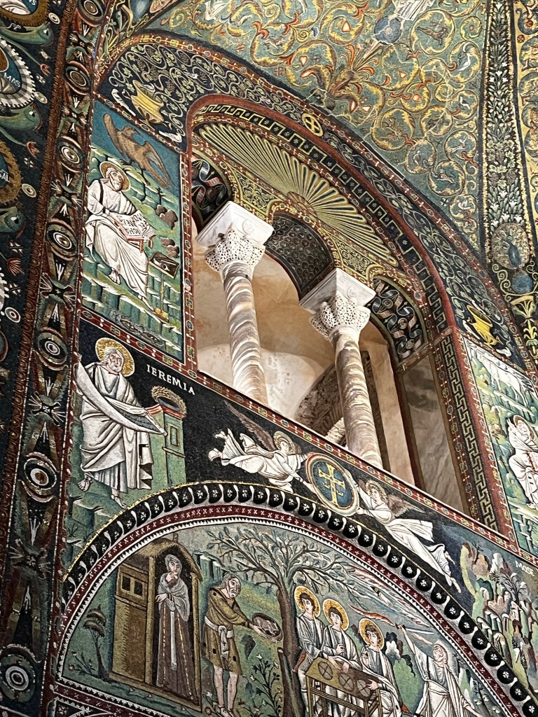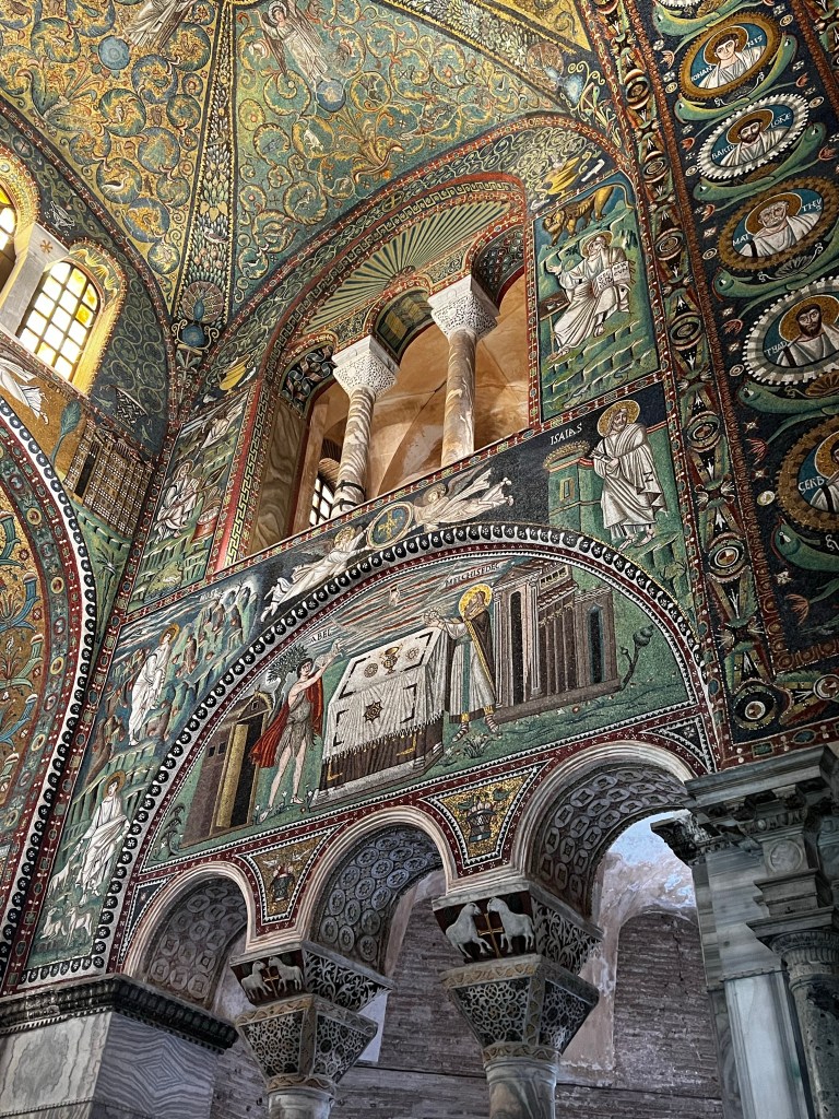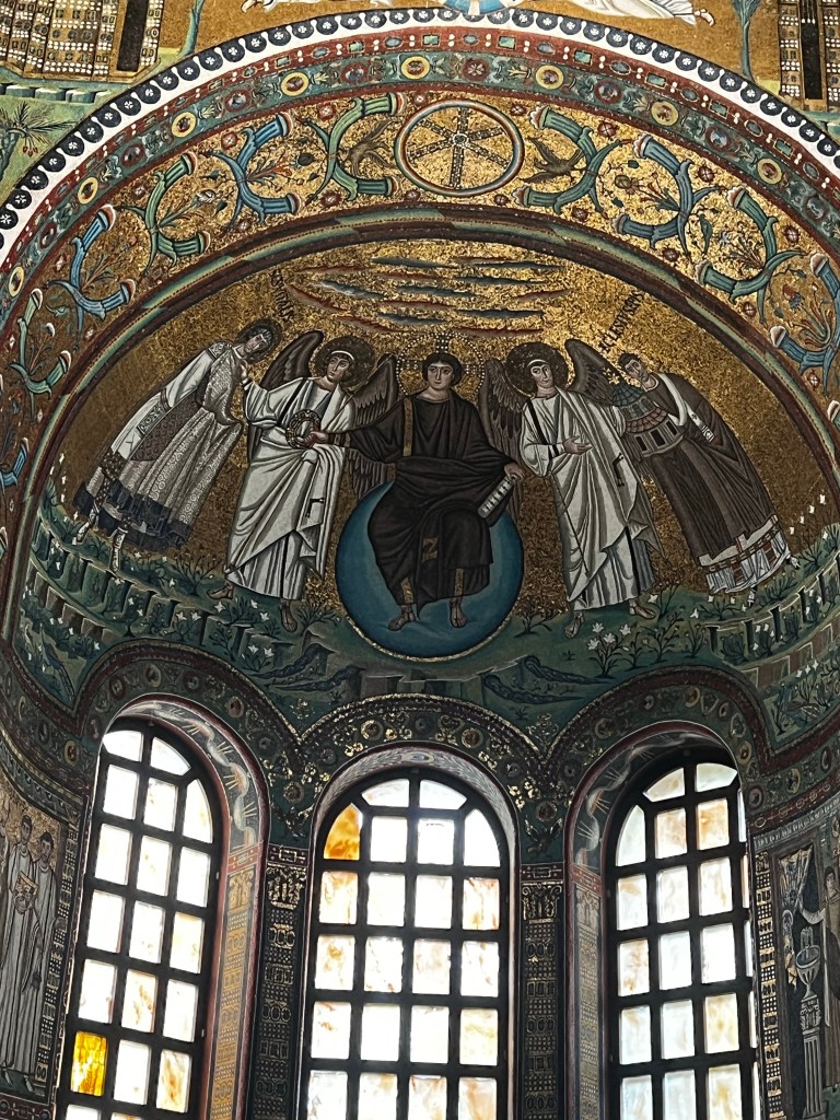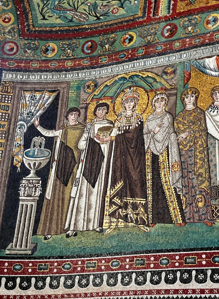 Begun in 525 this remarkable building was built and later decorated under the aegis of the Emperor Justinian and his wife, the powerful Empress Theodora. Both appear in these fantastic mosaics. They are truly inspirational in scale and workmanship. The photos don’t do them justice … the golden tesserae are sparkling.