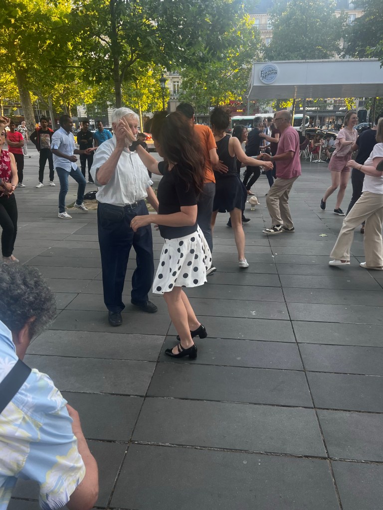 Paris is warm and sunny this evening and in the Place de la Republique an impromptu swing session is underway. There are skateboarders and kids kicking a football about; it lifts the spirts. Art Galleries in the Rue Turenne have private views spilling people with their wine onto the pavements. The cafes are full as people have dinner. Why isn’t England like this. It’s so relaxed and ordinary.., just people taking taking their ease and enjoying life.