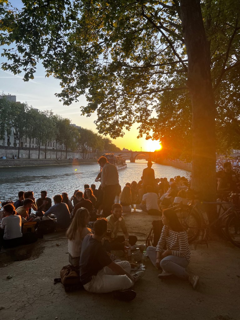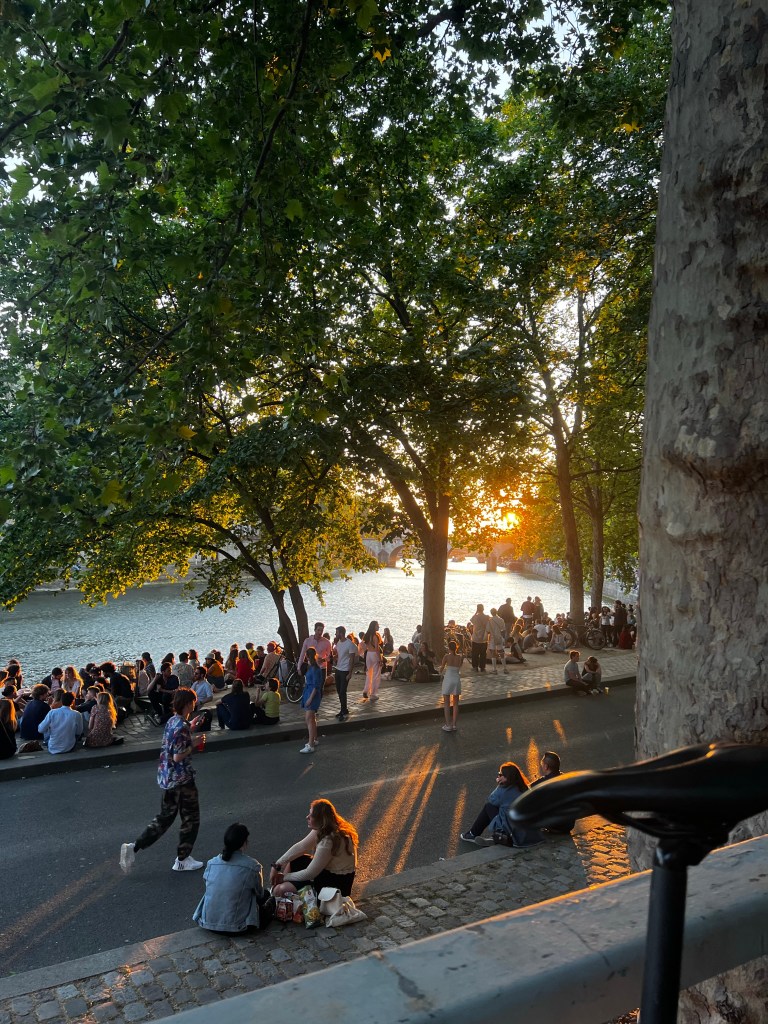 I’ve checked in the hostel and I’m walking by the Seine … it’s almost sunset … it’s vital, full of students enjoying the dusk by the river.