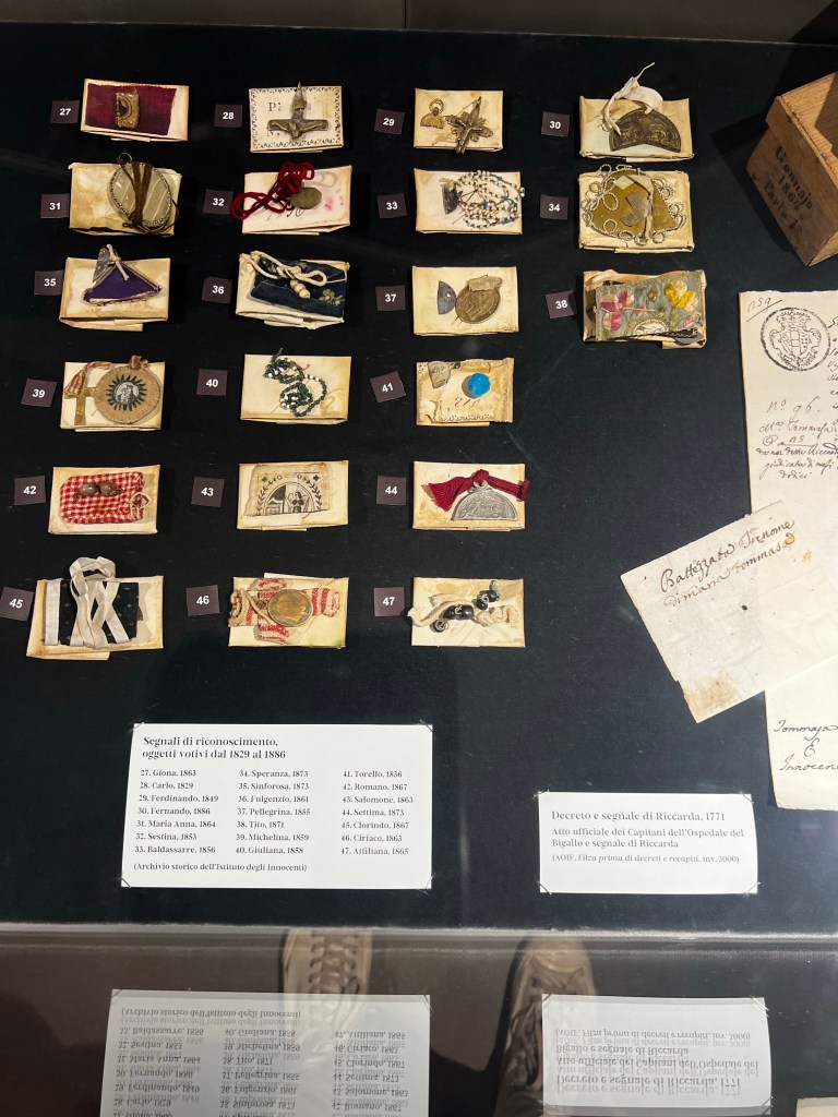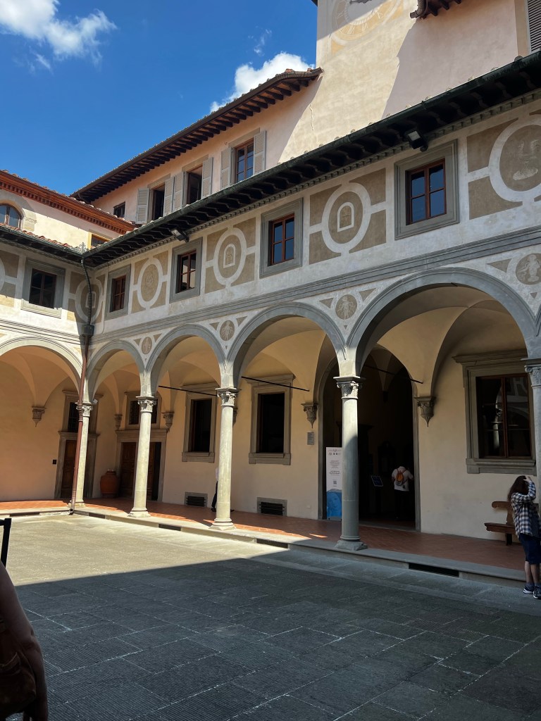 This afternoon we had a wonderful afternoon at the Ospidale. A very beautiful renaissance building by Brunelleschi. It was a fascinating place founded by the guild of silk makers in the fifteenth century as a place where women who were poor, prositutes and abandoned children could be left to be cared for by the church. It functioned as such until the early twentieth century. It perhaps gave the children the chance of survival and maybe an education and trade. It was one of many such orphanages in the city. It now forms part of a women and children research archive.