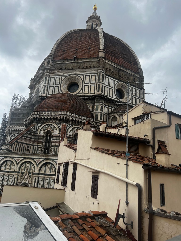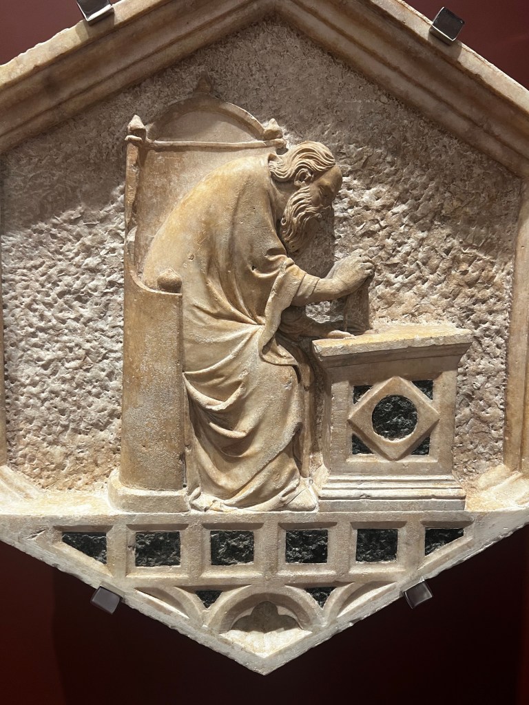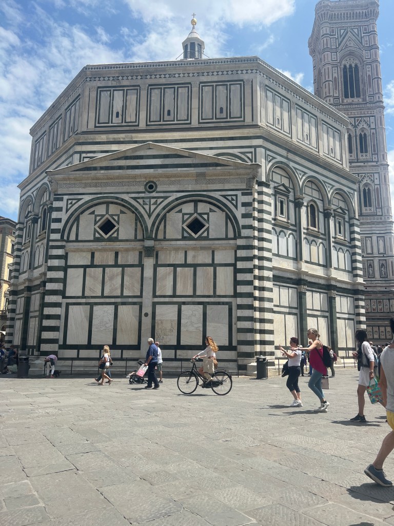 This morning I awoke a little later than usual. I didn’t realise how tired I was. I had booked tickets for the museum and the Baptistery as the weekend is free. It’s a little drizzly today but very warm. The museum is excellent. To preserve them many of the original sculptures together with Ghiberti’s fabulous Baptistery doors are now in the museum with replicas in their place on the building itself. Everything is so well presented and gives a real insight into the art, architecture and life of the Duomo.