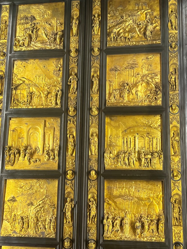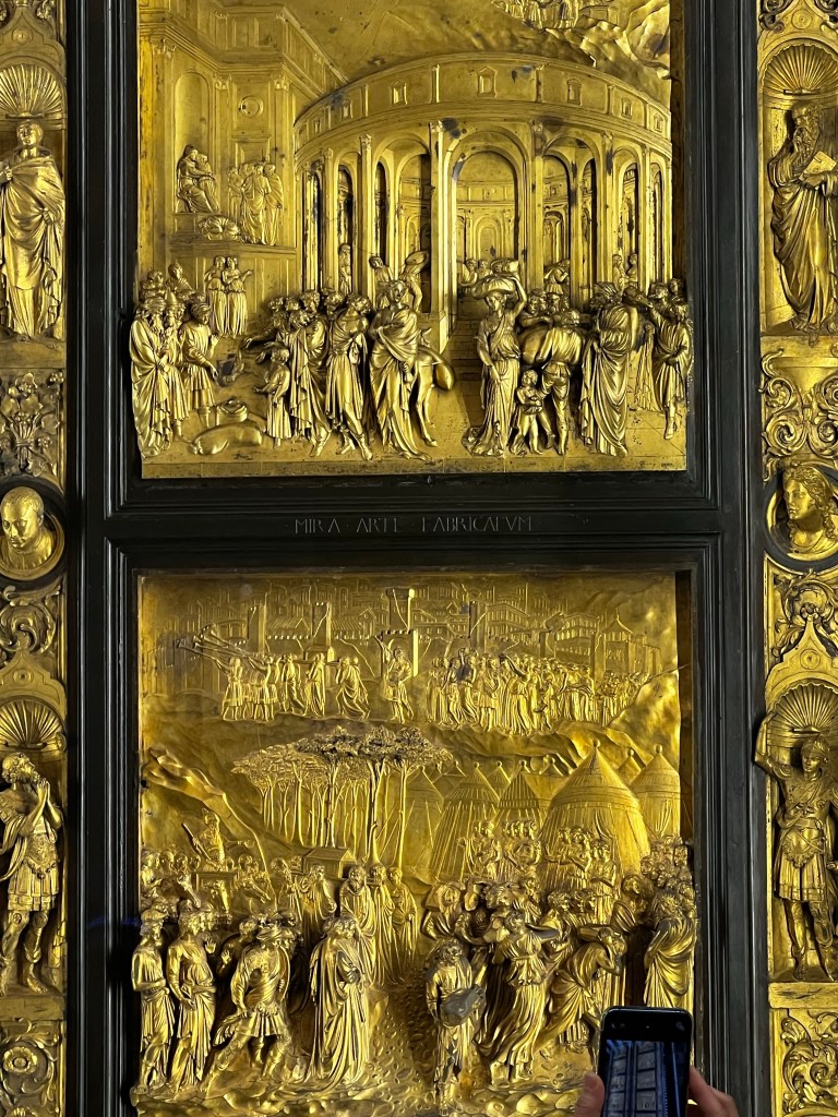 These are truly amazing. Made in the early fifteenth century, the skill and craftsmanship is a testament to a great artist. The perspective in each panel is amazing and the detail unbelievable … except seeing is believing. The doors imitate the design of earlier doors by Pisano made a century earlier. They really are one of the wonders of Florence and Renaissance art.