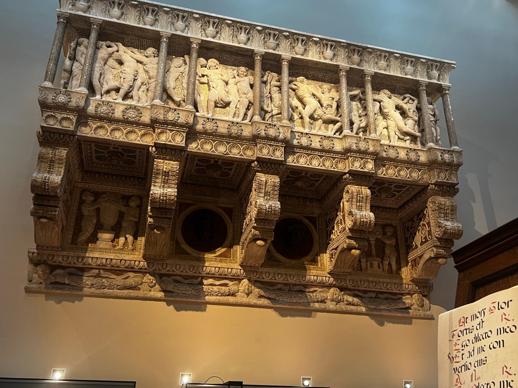 The other great sculptor represented her is Donatello. There are many pieces by him and his workshop. The singing gallery now moved from the Duomo to the museum is magnificent. Again full of detail and an astonishing tour de force of the stonemason’s art.
