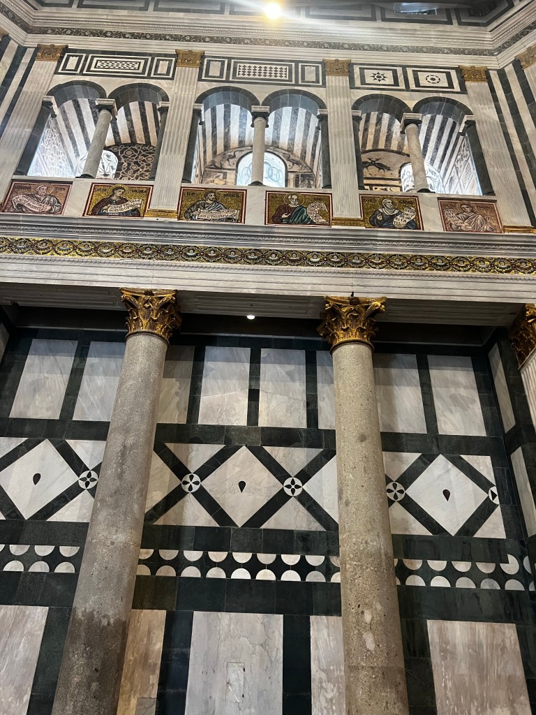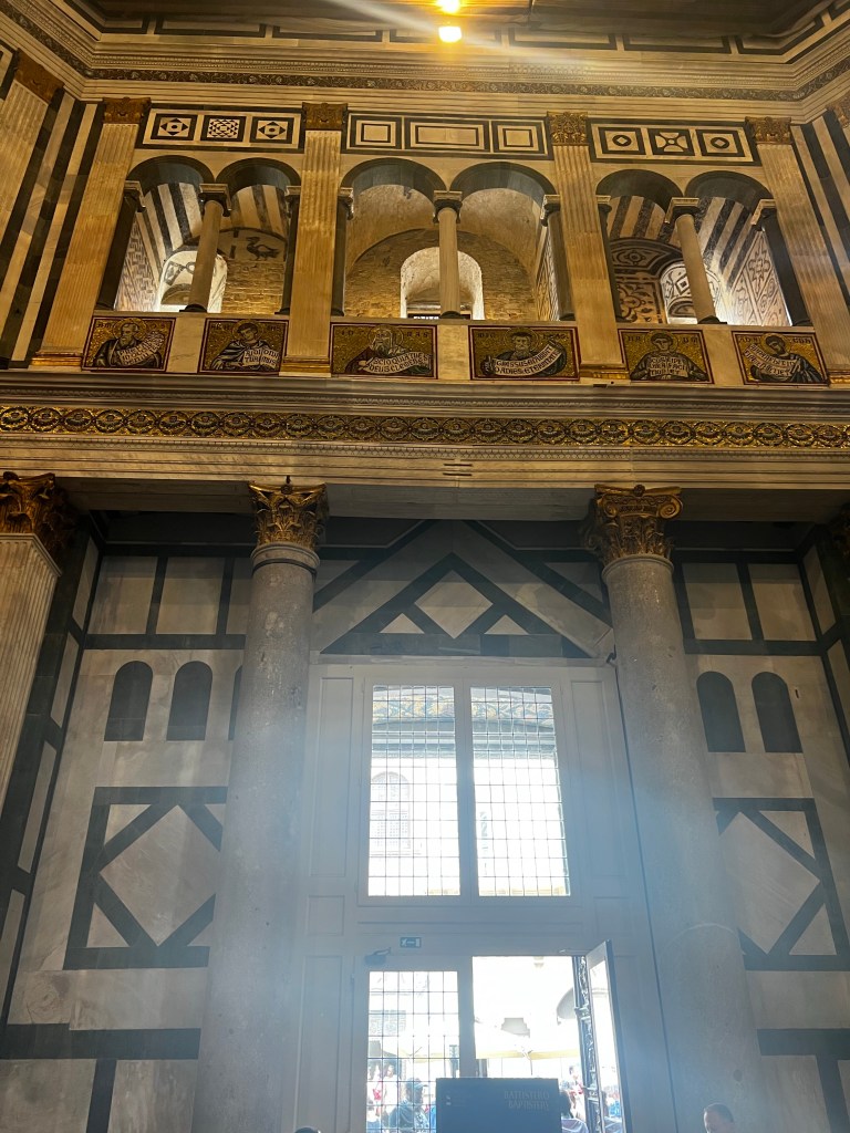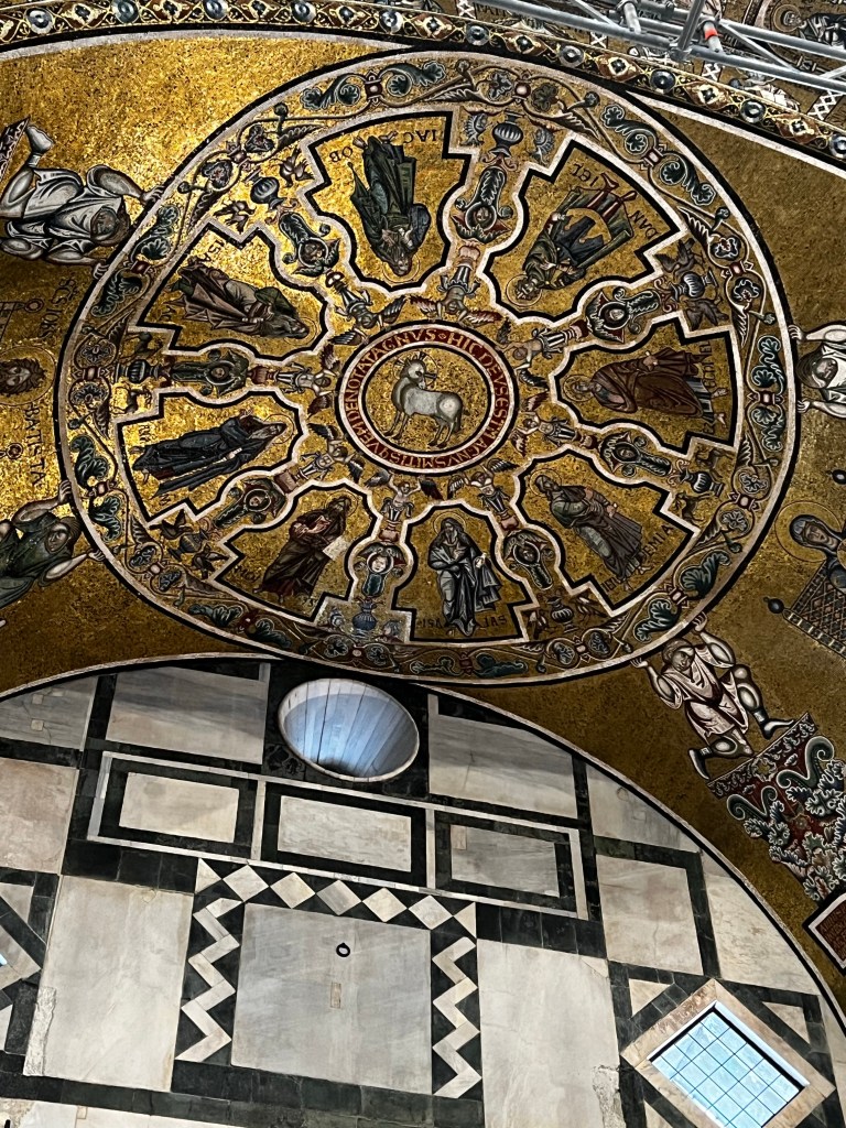 Unfortunately the baptistery ceiling is being restored but it is still an interesting building and built on the octagonal model to be seen in Ravenna and Many other Italian cities. The mosaics of the interior are beautiful and of course the doors now in the Museo are wonderful.