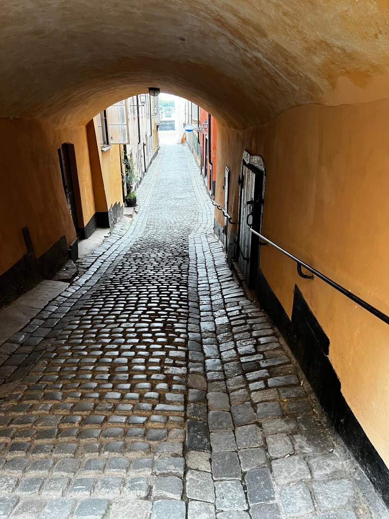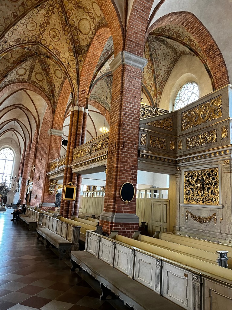 I’m now wandering in Stockholm Old City getting my bearings. It’s very attractive with its cobbled streets and painted buildings. It is very touristy but that’s to be expected. Tomorrow I’ll go in search of something less so. I’ve been recommended Sodermalm as hipster Stockholm so I’ll give it a try. One thing intrigues me; the street names and signs all have what appear to be constellations names beneath them. I’ll investigate.In the meantime I’m enjoying being a flaneur and taking in sights and people. I’ve visited the Cathedral which is splendid. A fifteenth century brick interior with some fabulous Baroque church furnishings which temper the austerity of the brick and create an interesting aesthetic contrast.