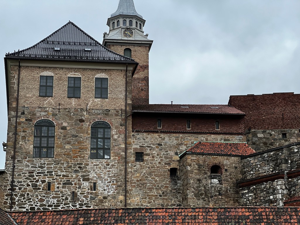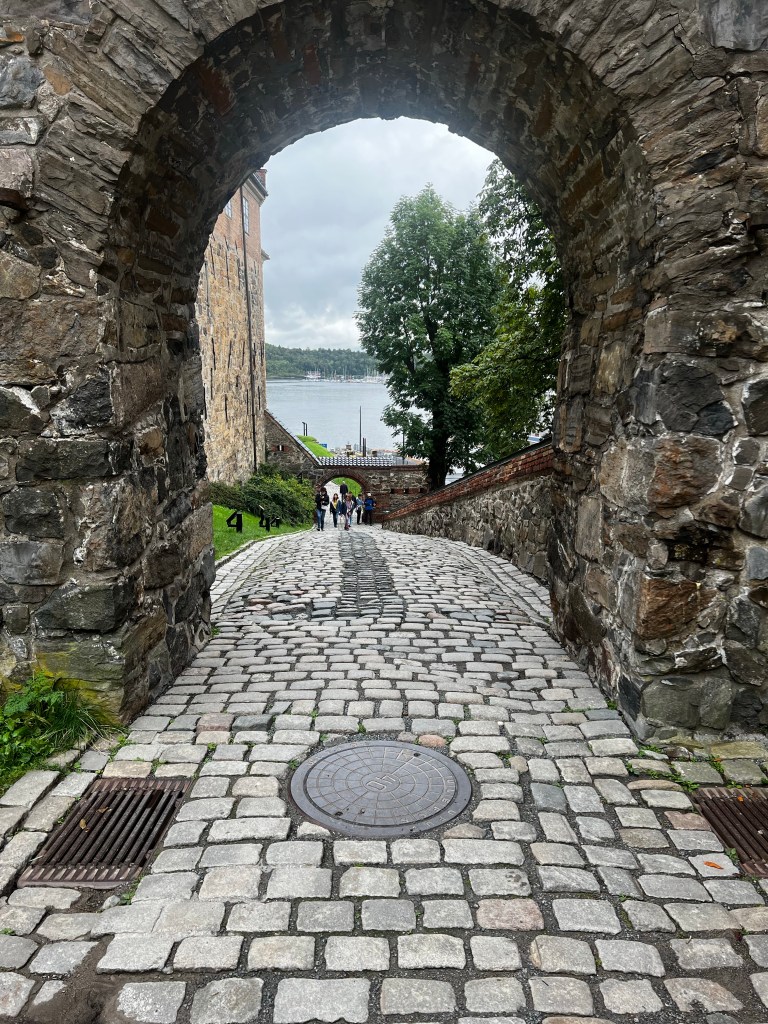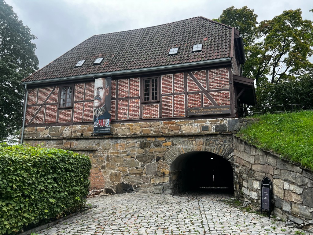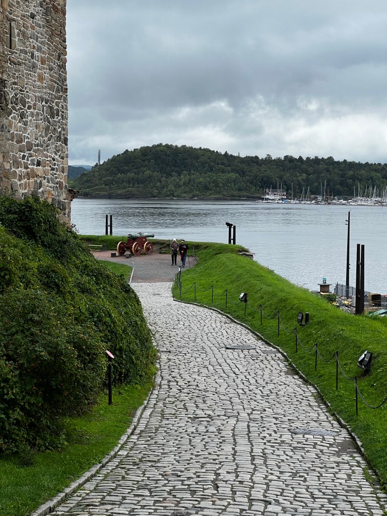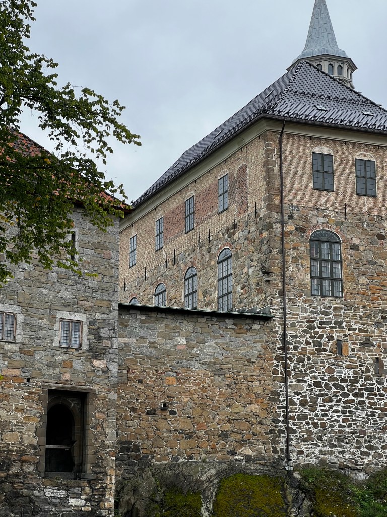 Well the hostel is fine if large like all these northern hostels. I miss the smaller type of hostel I found in Italy. The city is modern and I was told it was boring but so far I’ve walked the city centre, past the Cathedral and ended up by the fjord and the Akerhus fortress which was started in the 14th century and houses a variety of museums including one for the Norwegian resistance. It’s also home to the Military University. The castle is massive and sits overlooking Oslo Fjord and has some great views though today they were somewhat obscured by this monstrosity.