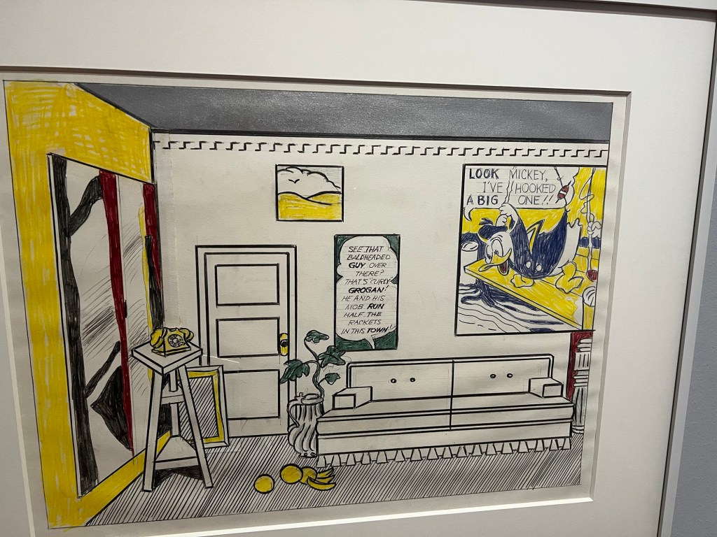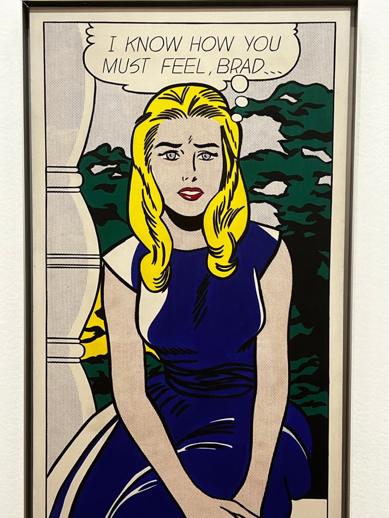 A beautiful and warm morning and yet another gallery. Im a bit obsessed I think no but they give such pleasure and open my eyes to new things. The Lichtenstein was really wonderful really well curated. I saw an aspect of his work I was unaware of. I knew of his use of comics, films and advertising to highlight American preoccupations with a certain stereotype of femininity and cultural mores but his interpretations of the work of earlier artists was really interesting and I was unaware of his sculpture and interest in brush strokes. I loved his take on surrealism and the artists studio.