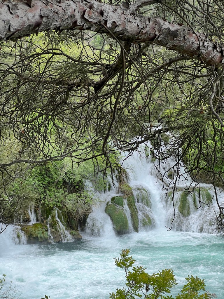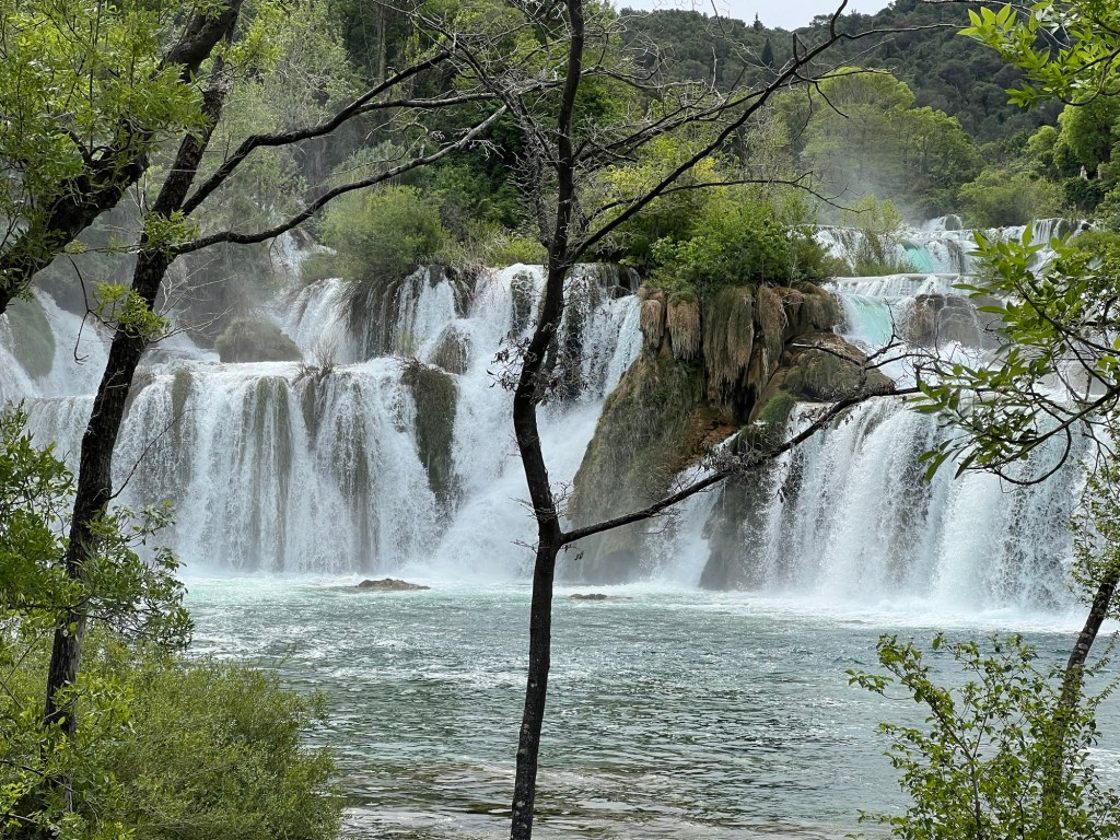 A dull start to the day but perhaps this weather is more appropriate to the season than the heat I’ve been experiencing so far. Krka is very lovely and at 9.30 in the morning very quiet. A small group of people on the bus … all very friendly. Talking to them made me realise how insular the British can be. One couple for example; he was Polish and she was French. They lived in Rotterdam but he had spent five years in Northern Ireland… and they were very typical of people I’ve met here.