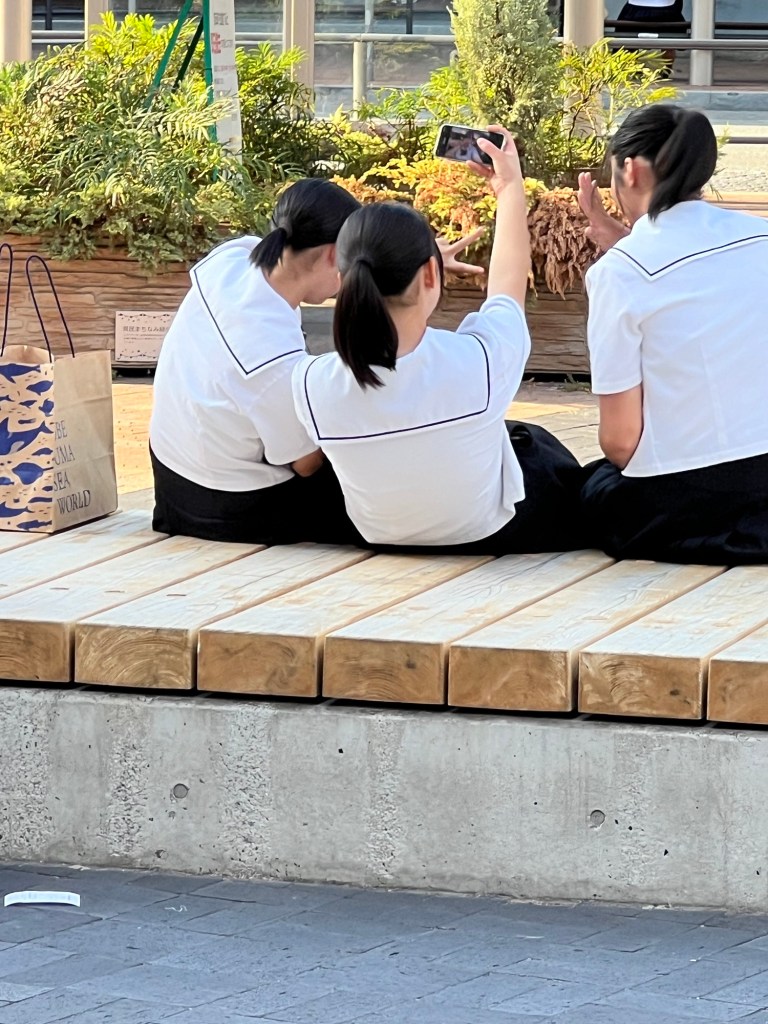 I particularly liked the kids coming home from school in their uniforms … the girls in skirts with sailor suit tops, the boys in white shirts. All Very Japanese in style. I’ll be watching out for more fashion in the next weeks.