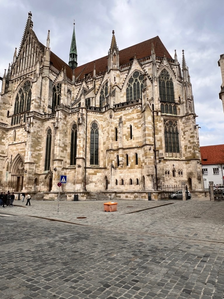 As Augsburg didn’t enthral me after an early breakfast I went to catch the train to Regensburg… another UNESCO city famed for its well preserved old town. It’s a spacious and pretty place with multicoloured building from the Roman period through the middle ages to the Baroque. Situated on the Danube it is pleasant to wander through. The cathedral is magnificent as are the many churches. Strolling along the river bank was pleasant on a chilly spring day and even though it was cold I had a gelato.