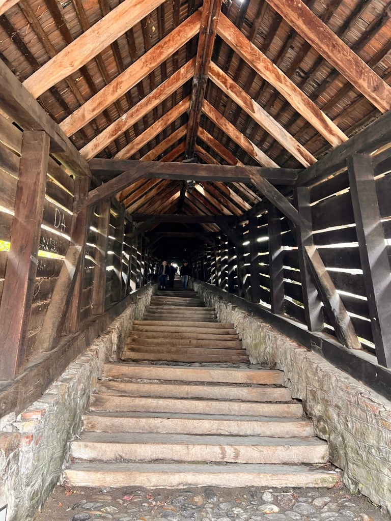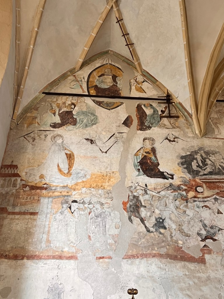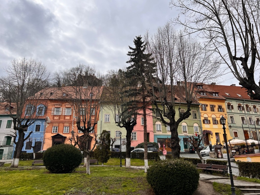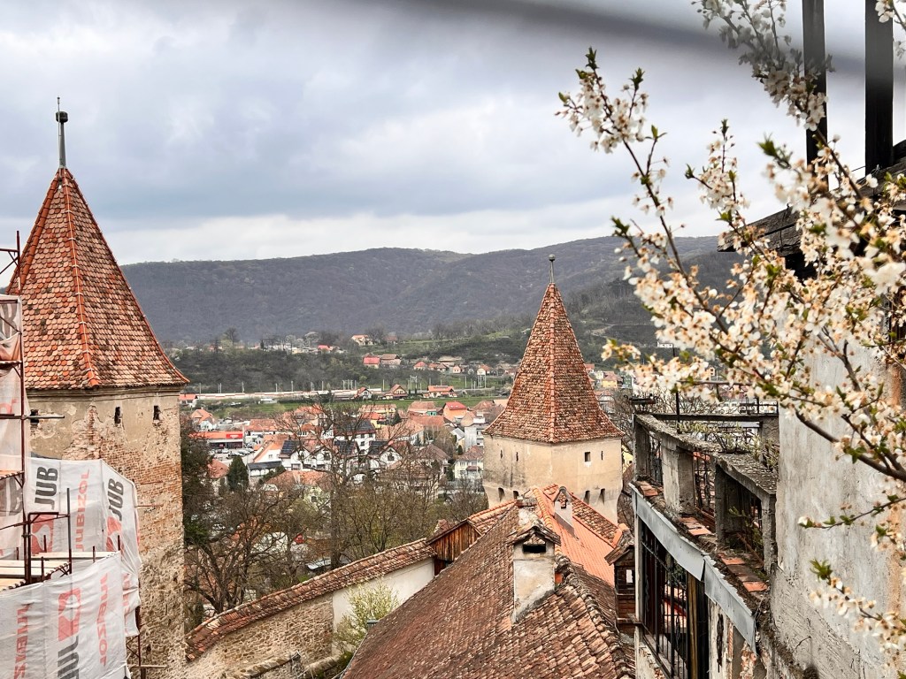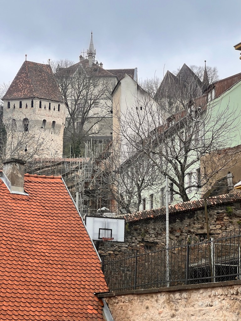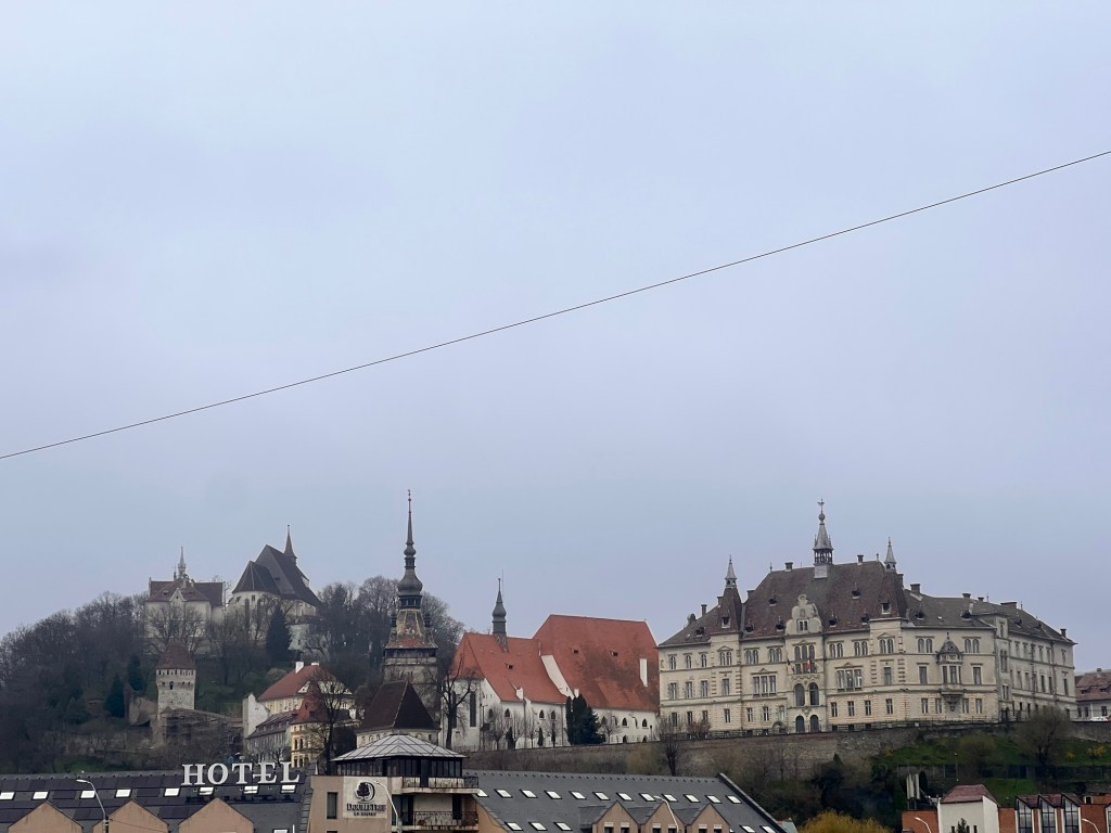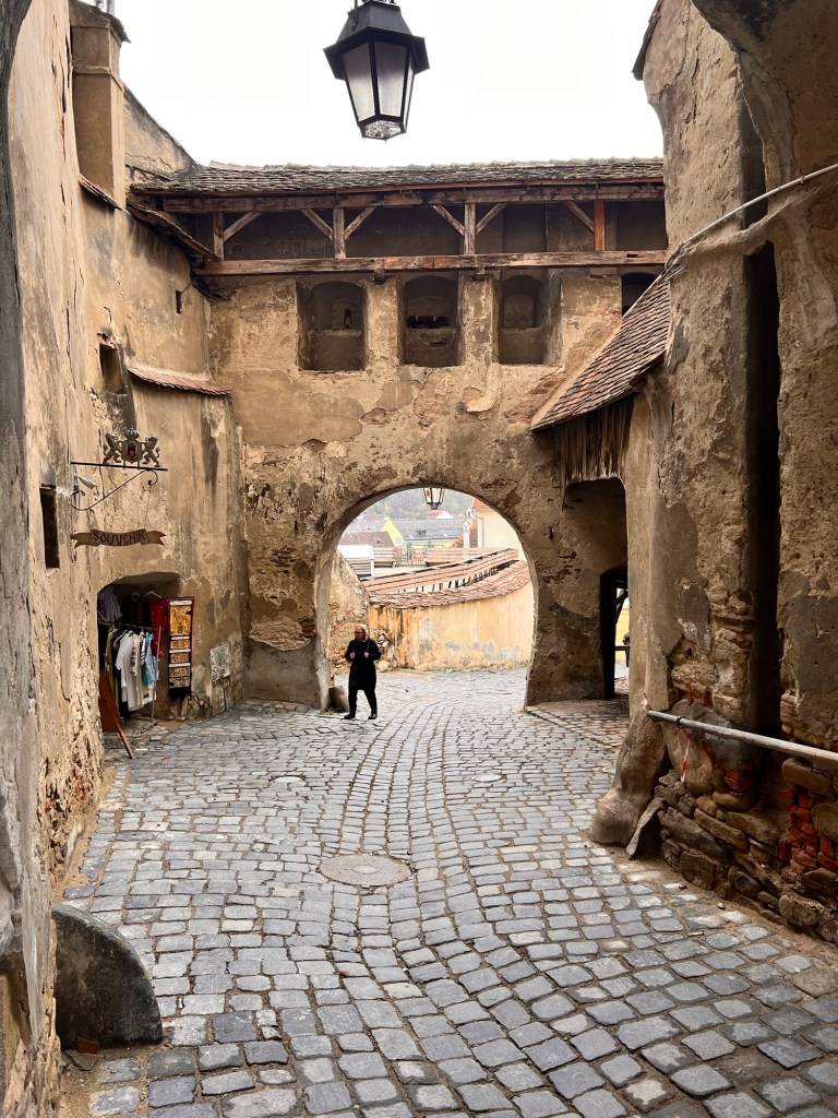 I’ve taken my first stroll up to the citadel. This is a remarkable town founded as a fortress high on a hill top in the thirteenth century and noted for its connection with Vlad Dracul who was ruler of Wallachia. There are several surviving towers each built by one of the town guilds and some remaining walls and bastions. Cobbled streets lead up to the hilltop lined with brightly painted buildings. No wonder it has UNESCO status. Well preserved and yet still a working town. It was settled by German workers in the 1200s and has a distinctly German feel to the architecture.It’s also the centre for hiking trails. It has two excellent churches with some interesting wall paintings and furnishings. It’s also nice to hear a Latin based language after the Slavic of Czechia and Slovakia. I can read a few signs!