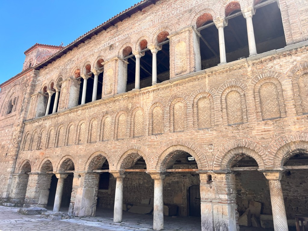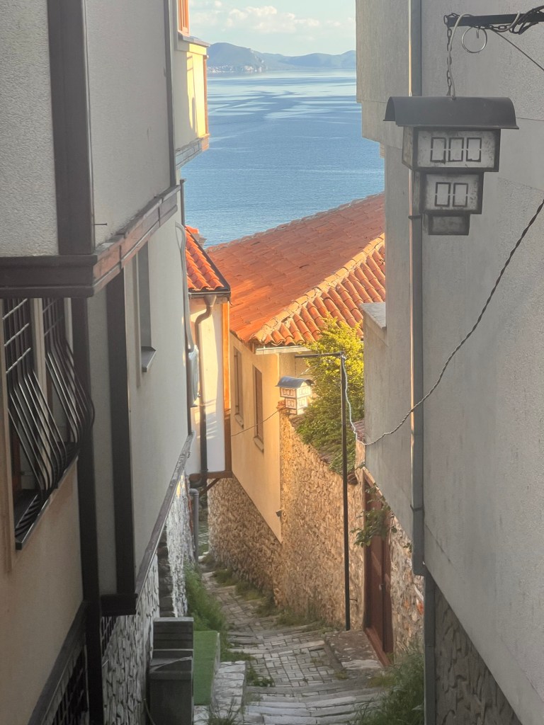 Ohrid is supposed to have 365 churches … there are certainly many, often tiny buildings hiding in side streets and alleys. It was the seat of Orthodox archbishops under the Byzantines and of the Ottoman government before Constantinople fell to them. It obviously has an chequered and significant history and in the tenth century was home to a short- lived university founded by St Clement.