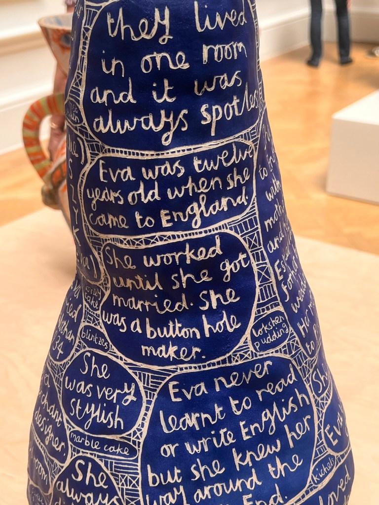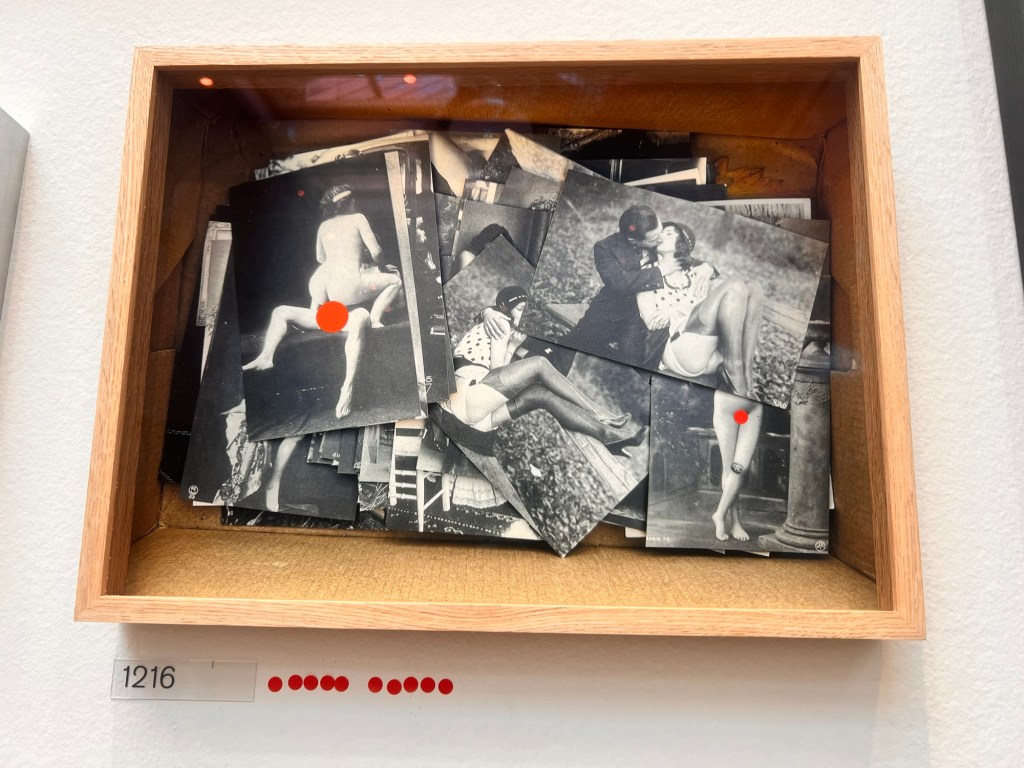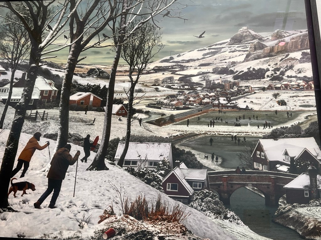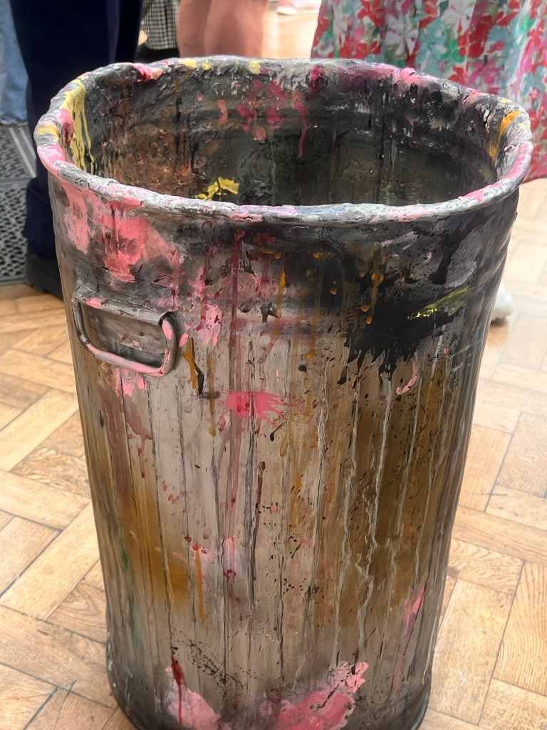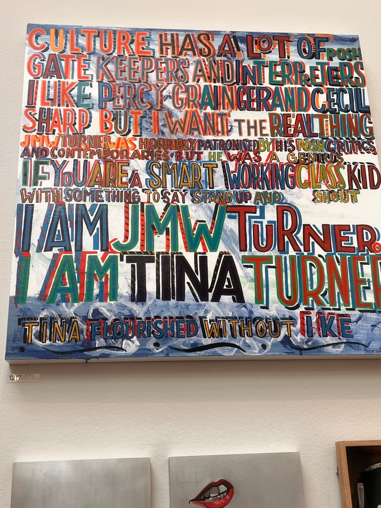 Although I think I’m open to all types of art I sometimes find it difficult to engage intellectually and emotionally with aspects of some more conceptual art. The cost of some art on display and its almost corporate approach bears out the sentiments outlined in the previous painting. £60,000 for a painted dustbin, or £100, 000 for a group of rats (though I liked it) seem to smack of elitism. The collages of objects were interesting, reifying abstract concepts. Much work seems to be conceived as dressing for corporate receptions or museums than a domestic setting. It embodies a self fulfilling prophesy.